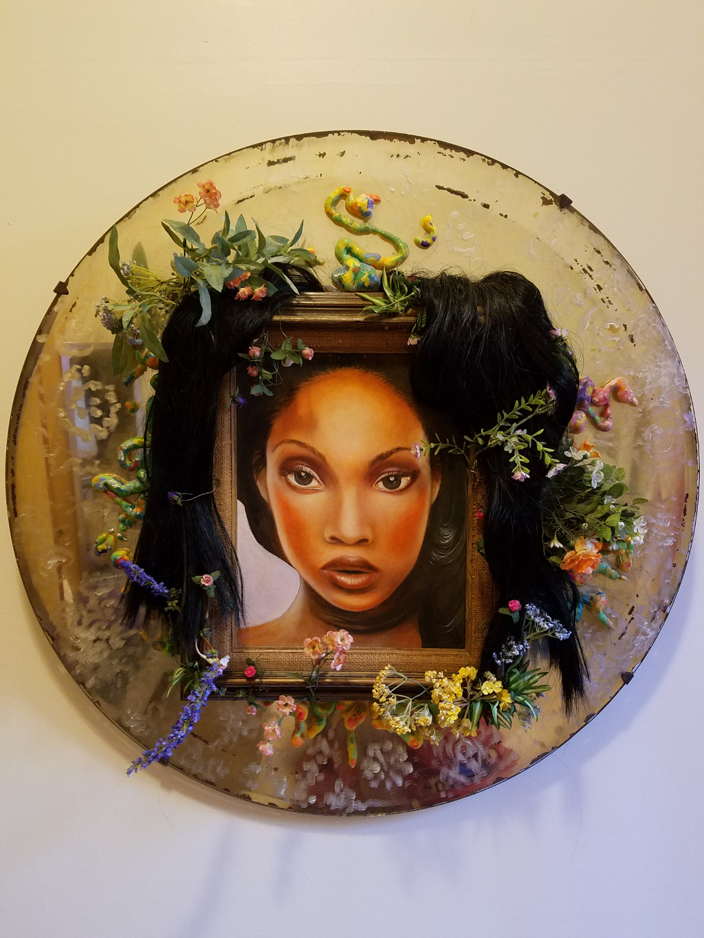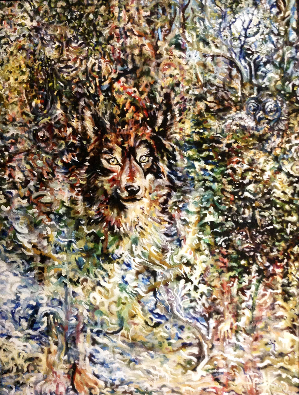 Geoff's own blend of mixed media, incorporating colors and shapes of found objects into his palette