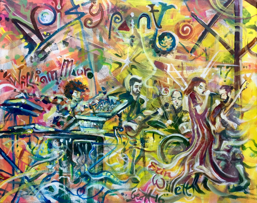 Live performance painting. The spirit of the music flows through the work.