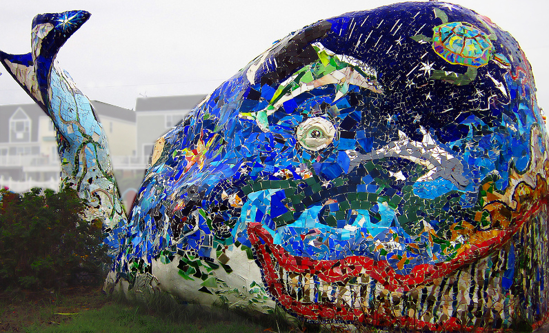 A beloved Rockaway landmark by Geoff Rawling. A 40-foot magical mosiac whale, currently lost at sea.